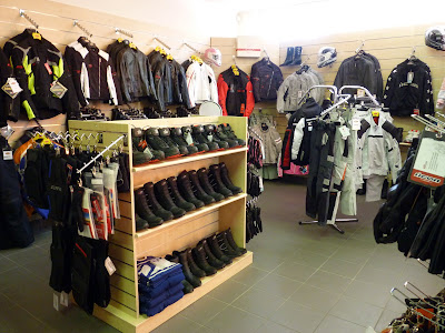 Une très sympathique équipe venue directement de "Spreitenbach" (avec l'accent, on rrrroule les R !) nous a accueillis et prodigué de bons conseils sur les équipements en vente chez eux comme les casques HJC (Ben Spies), les habits très haut de gamme (et très beaux aussi..) Kushitani. On y trouve également les équipements Icon (du rose, des têtes de morts, des étoiles !) et les bagages Oxford.